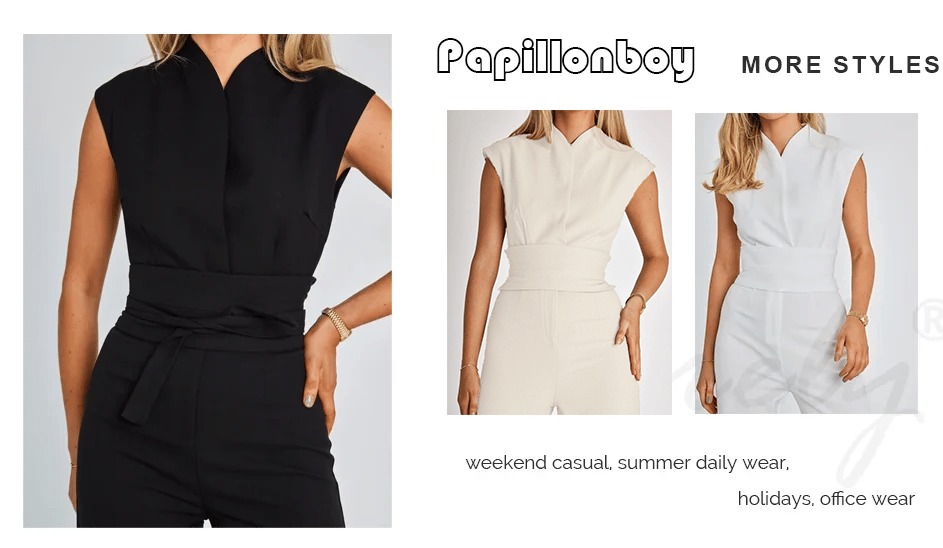 - Sleeveless design, easy to pair with coats, jackets, cardigans or suit in every season. Wide leg long pants jumpsuit, flowy and charming to pair with high heels, boots or sandals.